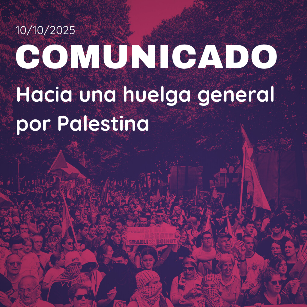 Desde Antikapitalistak nos sumamos al llamado de convocar una huelga general el próximo 15 de octubre. Animamos a todos los sindicatos, partidos de izquierda y movimientos sociales a que consideren, apoyen e impulsen esta iniciativa. Es el momento de construir una huelga general para exigir sanciones reales, la ruptura efectiva de todo tipo de relaciones con el Estado de Israel. Una huelga general para profundizar la coordinación internacionalista con quienes luchan en todo el mundo por una Palestina libre, laica, socialista y democrática, desde el río hasta el mar.
